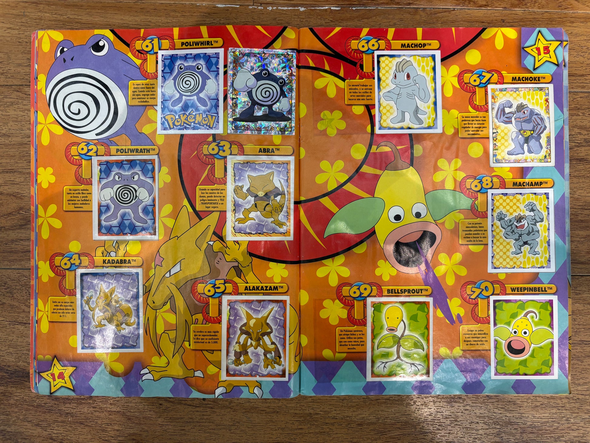 Album Pokemon de Stickers original, lanzado en 1999, COMPLETO, tiene algunos deterioros por tiempo, VER FOTOS